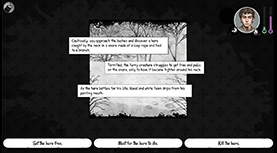 A game of morality.In addition to managing your health, injuries, malaise and infections, the game establishes it’s own morality landscape where the player has to make difficult choices.